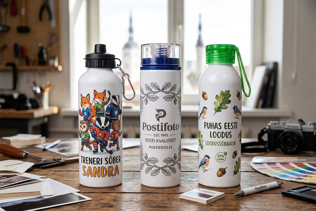 Ищете, где заказать фото на спортивных бутылках? Онлайн-фотоцентр Postifoto в Эстонии предлагает стойкую печать фотографий, логотипов и надписей на качественных бутылках для воды. Создайте свой уникальный дизайн в нашем удобном онлайн-конструкторе за пару минут! Мы принимаем заказы от 1 штуки в Таллинне с быстрой доставкой почтоматами по всей стране.